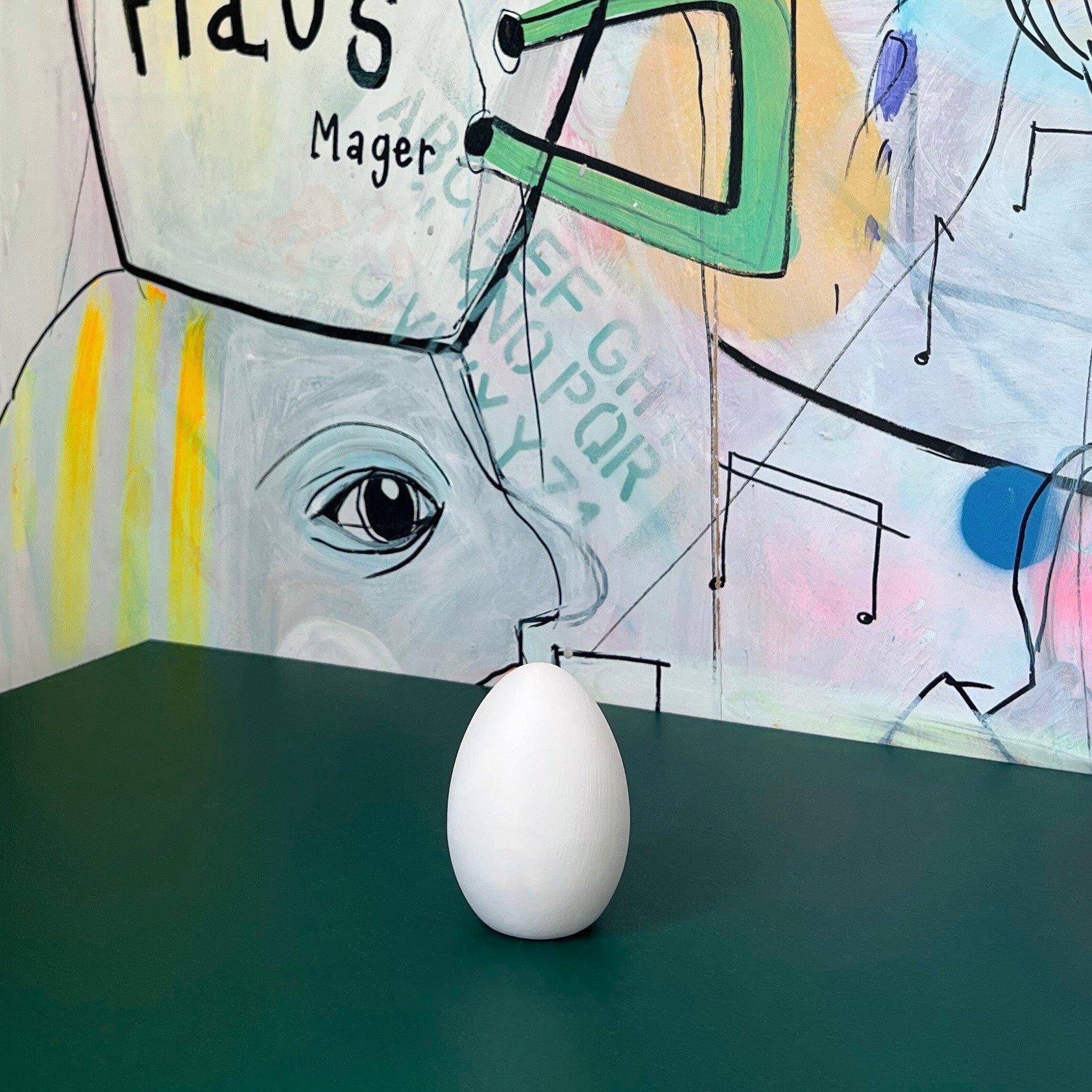 Mål på lille stående æg: H: 7 cm x B: 4,5 cm